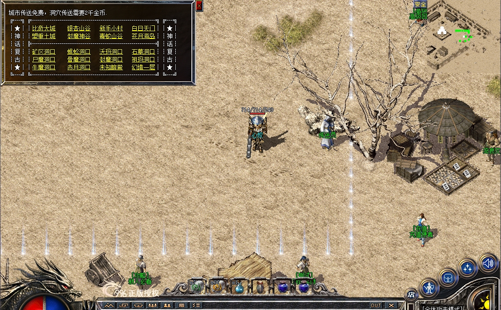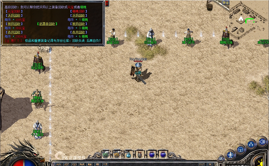 白嫖玩家前期建议去蜈蚣洞、尸魔洞、骨魔洞、幻7、牛魔洞等地图打沃玛、祖玛装备进行回收或者摆摊出售给RMB玩家以获得元宝来源。