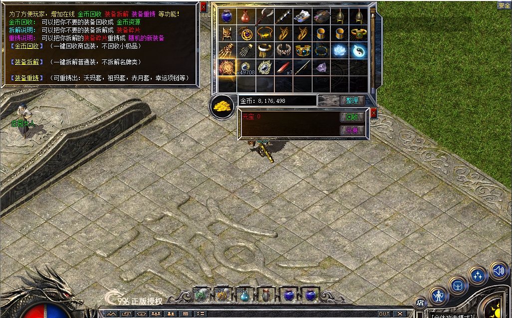 2、装备回收:通过背包回收按钮实现在线回收,可回收金币或者<装备碎片>。