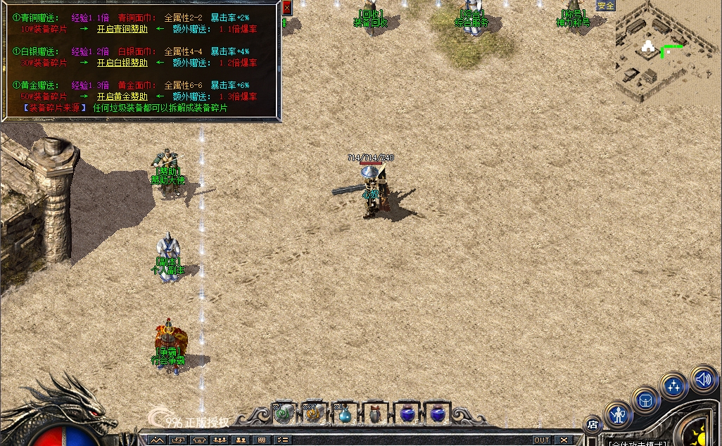 3.收玩家的装备碎片,开启赞助获得高倍经验!